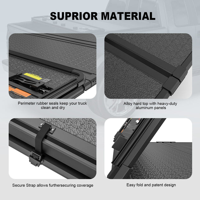 The Polemotor Hard Quad Truck Bed Tonneau Cover is composed of double-layer vinyl, which has been thoroughly tested for UV protection and is characterized by tear resistance, water resistance and high temperature resistance. It escort your travel.